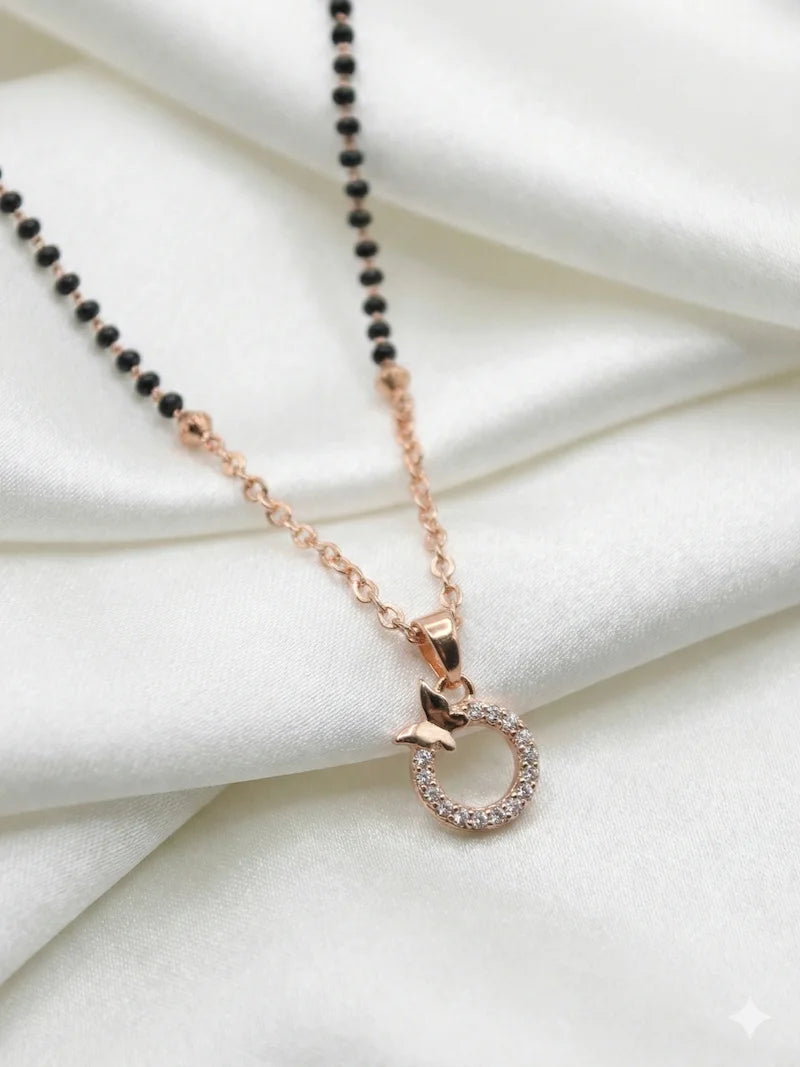 The shiny white stones give a bright and rich look. The circle and butterfly design shows love, beauty, and positivity. This mangalsutra is perfect for daily wear and also good for festivals and special days.